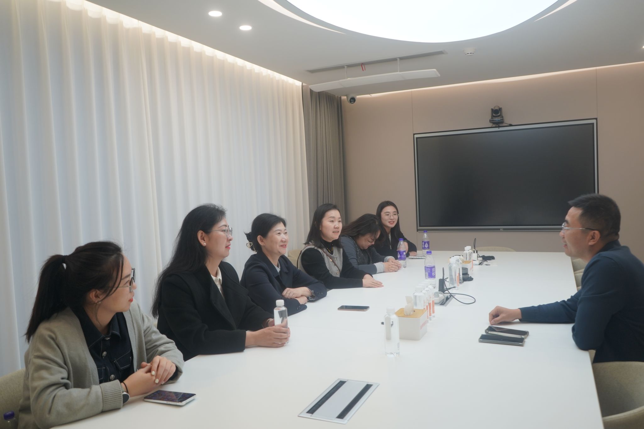在永宁幸福科学馆,教师团队在馆方主要负责人的全程陪同下,沉浸式参观集公益科普与心理咨询治疗于一体的一期、二期场馆。通过专题座谈与工作人员的细致讲解,教师们全面深入了解科学馆“以科技赋能积极心理实践”的设计理念、“分层服务学生与社会群体”的功能布局、“公益+专业”的运营模式,以及脑电反馈仪、AI心理测评系统等先进设施设备的应用场景。科学馆把脑电技术和积极心理干预结合,用数据可视化帮来访者感知情绪变化,让来访者在体验中理解心理知识。据悉,该馆由台州市黄岩区政府与清华大学心理与认知科学系联合打造,将积极心理学前沿研究成果与脑电技术、AI人工智能深度融合,构建起全景式、交互式的幸福体验空间,其创新运营模式为学校优化心理中心管理、打造互动式心理服务体系提供了宝贵参考。